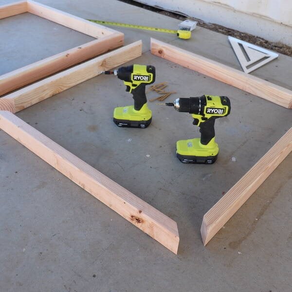 Соберите рамки и скрепите по углам двумя саморезами 7,5 см, предварительно просверлив отверстия.
