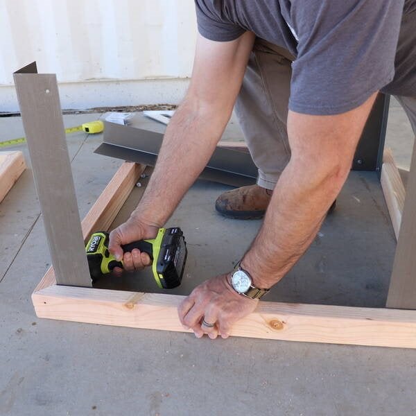 После того, как ваши рамки готовы, прикрепите верикально по внутренним углам первой рамки кровельные уголки 75 мм x 75 мм стандартными кровельными саморезами. Длина уголка зависит от того, какой высоты вы хотите получить грядки.