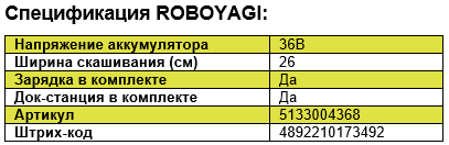 Для обеспечения безопасности в ROBOYAGI встроены следующие защитные функции. Защита PIN-кодом позволяет не беспокоиться о краже или неправильного использования. Для физической безопасности предусмотрен защитный кожух от лезвия, а также остановка работы лезвия не более, чем за половину секунды.